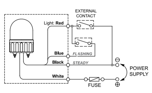How is the Menics MLGF-10-R beacon light wired? Menics MLGF-10-R 66mm Beacon Light, 110V, Red, Steady/Flashing